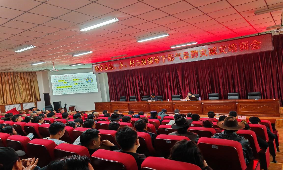 图为:玉树州政府雷电灾害防御工作安排部署视频会讲座 图为:杂多县、乡、村三级气象防雷减灾推进会