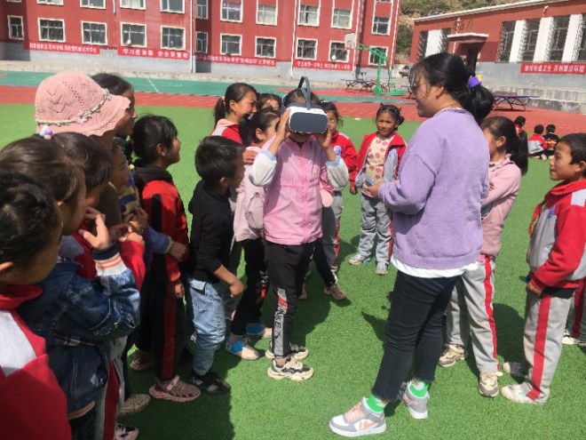 这次活动以"智慧气象、科学避险"与气象科技助力"一优两高" 科普服务民生发展为主题,以建设民族团结进步和气象科技服务青海科学发展、服务改善民生为主线,在课堂上,分别以天气预报是如何做出来的、环境气象与高原生活、电视里的天气预报是怎样解说的等新颖气象科普题材,绘声绘色、生动有趣、通俗易懂开展宣讲活动,宣讲互动中学生们在主讲老师风趣的带动下,认真聆听并踊跃举手、积极抢答老师提出的一个个气象小知识,课堂气氛十分活跃,从同学们天真好奇的眼神和积极互动的场景中,表现出基层农村牧区学生对气象科技知识的极大兴趣。气象科普宣讲人员还以"努力学习,走出大山,外面的世界很精彩!"为题,为学生讲述了自己如何走出大山的亲身体会,激发贫困村学生努力学习科学文化知识,长大后报效祖国回馈社会。在户外操场上,科普宣讲人员打开虚拟现场设备,让学生们第一次感受到了校园安全、自然灾害等VR虚拟现场效果带来的高科技成果演示。