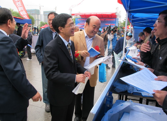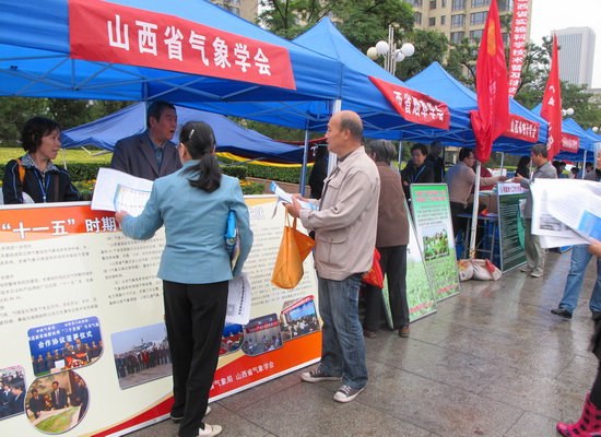 9月17日,省气象学会积极组织气象科普志愿者和科普工作者参加了以“坚持科学发展,节约保护水资源”为主题的山西省“全国科普日”暨第八届“科普三晋”系列活动启动仪式。省气象局副局长、省气象学会理事长张洪涛出席启动仪式,郝寿昌、武永利等十五名气象专家被聘为“山西省提升公民科学素质科普专家” 称号。 省气象学会围绕“全国科普日”活动这一主题,认真部署,科学筹划,在省城龙潭公园开展了直接面向公众、形式多样的科普活动,向社会公众散发《山西省气象灾害防御条例》、《气象科普小常识》等科普宣传资料共12000余份,并向前来咨询的社会群众耐心讲解气象知识。同时,展出气象科普展版4块,吸引了大批公众观看,科普内容赢得好评。省科协党组书记杨伟民、省科协副主席郝建新等领导也驻足展位前,向气象工作者表示亲切慰问。(李国英 温汉光)