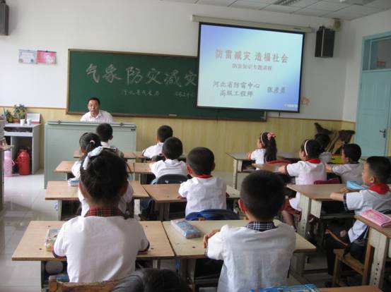 继5月12日,河北省气象局气象服务首席专家、新闻发言人郭迎春主任,做客长城网《强省论坛》栏目,向大家介绍气象防灾减灾的科普知识以及切实可行的气象防灾减灾对策和建议;气象科普宣传进军营之后,5月14日下午,河北省气象学会组织防雷专家走进石门小学课堂,讲解夏季雷电防灾减灾知识。防雷中心张彦勇专家从雷电的形成、方式、预防等方面给二年级的同学上了生动一课,图文并茂配以视听的动画效果、互问互答的活跃气氛,激发了同学们的极大兴趣,同学们提前做好了“气象知识”手抄报,争先恐后让专家观看,收到了良好的课堂效果。学校领导特别重视科普课堂尤其防灾减灾知识的宣传,希望以后多进行这方面的知识讲座,扩大同学们的课外视野。之后,气象学会赠送了《中小学生气象防灾减灾手册》。河北省气象学会近期还将组织各专业专家进校园、进社区、进农村开展系列科普讲座,以提高民众防御夏季气象灾害的能力。(河北省气象学会)