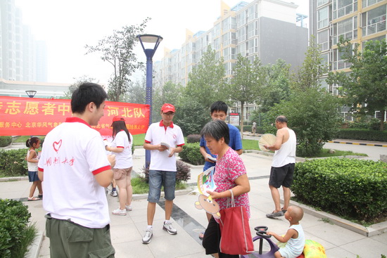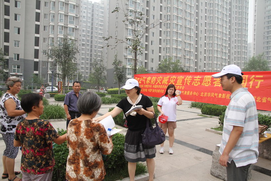 继与兰州大学和成都信息工程学院联合开展2012年“气象防灾减灾宣传志愿者中国行”之后,7月20日,河北省气象学会又与中国地质大学共同开展气象防灾减灾科普知识进社区活动。 河北省气象学会工作人员与中国地质大学学生志愿者来到石家庄市天然城社区,在广场悬挂“气象防灾减灾”条幅,设立气象知识宣传海报,向社区居民发放应急避险常识手册和气象预警信息知识宣传单页,并为社区居民详细地讲解了暴雨、高温、雷电等夏季主要气象灾害的特点及其避险自救常识。 河北气象学会秘书长李根娥指出,目前已经入伏,并且河北也进入盛汛期,高温闷热和暴雨雷电等天气增多,应急避险常识的宣传显得尤为重要,人们的防灾减灾意识也需要进一步得到提升。 此次防灾减灾科普宣传走近天然城社区,是2012年“气象防灾减灾宣传志愿者中国行”河北队走进井陉宣传气象科普知识活动的延伸,近期河北省气象学会又为井陉县上安镇村民播放了灾难题材影片《后天》,唤醒人们的防灾减灾思维,增强人们的防灾减灾意识。 “气象防灾减灾宣传志愿者中国行”活动也将继续开展,扩大气象科普活动的社会影响,深入城镇农村,不断提高全社会防灾减灾能力和应对水平。