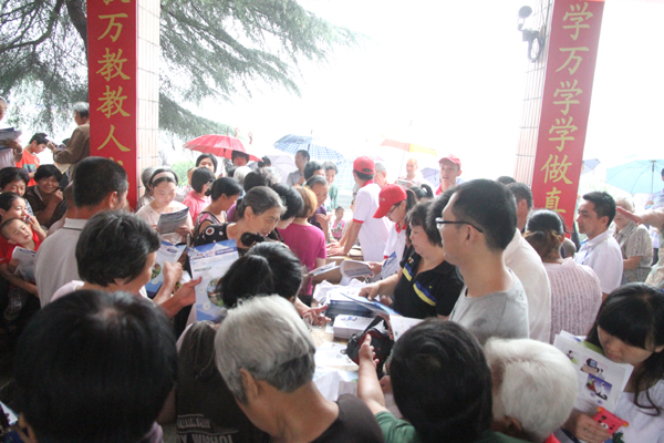 7月9日,“2012年气象防灾减灾宣传志愿者中国行”活动河北队志愿者冒雨走进石家庄市井陉县上安镇进行气象科普知识宣传活动,为当地村民和上安西小学学生发放气象科普书籍资料和宣传品千余份。 来自兰州大学和成都信息工程学院的大学生志愿者深入井陉县上安镇,在活动场地悬挂“气象防灾减灾”宣传条幅,设立气象知识宣传展板;制定了较为完备的问卷来调查村民的防灾减灾意识,发放了《农村气象灾害避险》和《气象知识》等科普书籍和宣传品,并耐心地讲解了暴雨、高温、雷电等夏季主要气象灾害的特点及其避险自救常识。在上安西小学里,大学生志愿者更是为小学生开创了生动有趣、丰富多彩的科普活动形式,开展了气象图标知识识别、互动游戏、气象科普知识趣味有奖竞答等活动,穿插播放气象知识动画短片,并给踊跃回答气象问题的小朋友奖励了学习用品。 上安镇一位村民告诉记者,村里人都很需要了解气象知识,每当遇到雷电和暴雨等天气,都会有些害怕和担心。现在气象科普宣传队伍来到家中,又有志愿者的讲解,我们学到了很多知识。 来自成都信息工程学院的大学生志愿者王丹说,来到农村我感觉这里的通讯设施不会像我们城市那么好,希望把我们的知识尽最大的努力带给他们,尤其是要带给孩子们,希望他们增强自我防范意识,快快乐乐的去生活。 河北气象学会秘书长李根娥表示,进入夏季,河北省自然灾害种类增多、发生频率也较高,尤其是在防灾减灾能力较为薄弱的农村,开展气象科普活动更具有针对性。同时,让大学生志愿者深入农村实地,既有利于普及气象知识,也有利于提高自身实践能力,实现其社会价值。