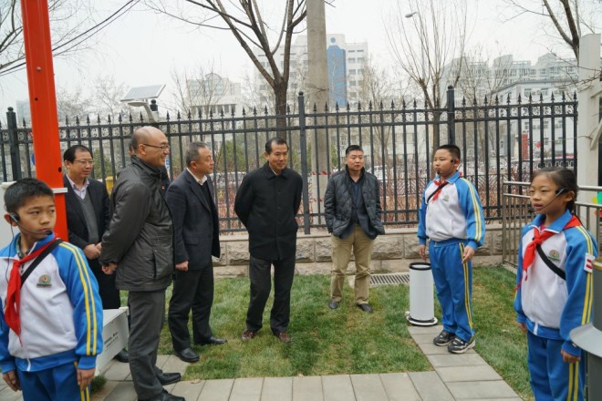 小小观测员向领导和专家介绍“华云金穗气象站”