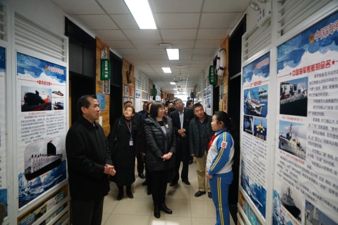 中国气象学会王金星秘书长和中国气象局办公室马明主任接受同学们绘制的“智慧气象画卷”