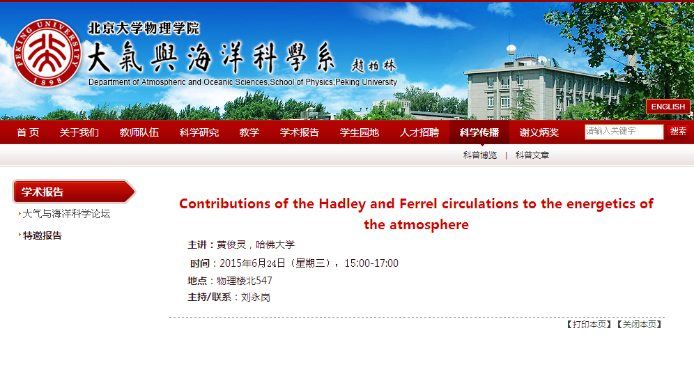 北京大学大气与海洋科学论坛学术报告2015-06-24